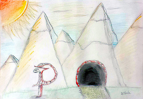 “Gilgamesh comes to the gap in the Mashu Mountains guarded by the Scorpion People”