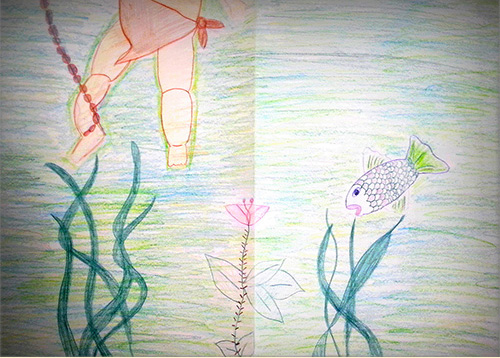 “Gilgamesh dives to find the prickly heartbeat plant which makes an old man young again” Drawing by Fawz Omran (14)